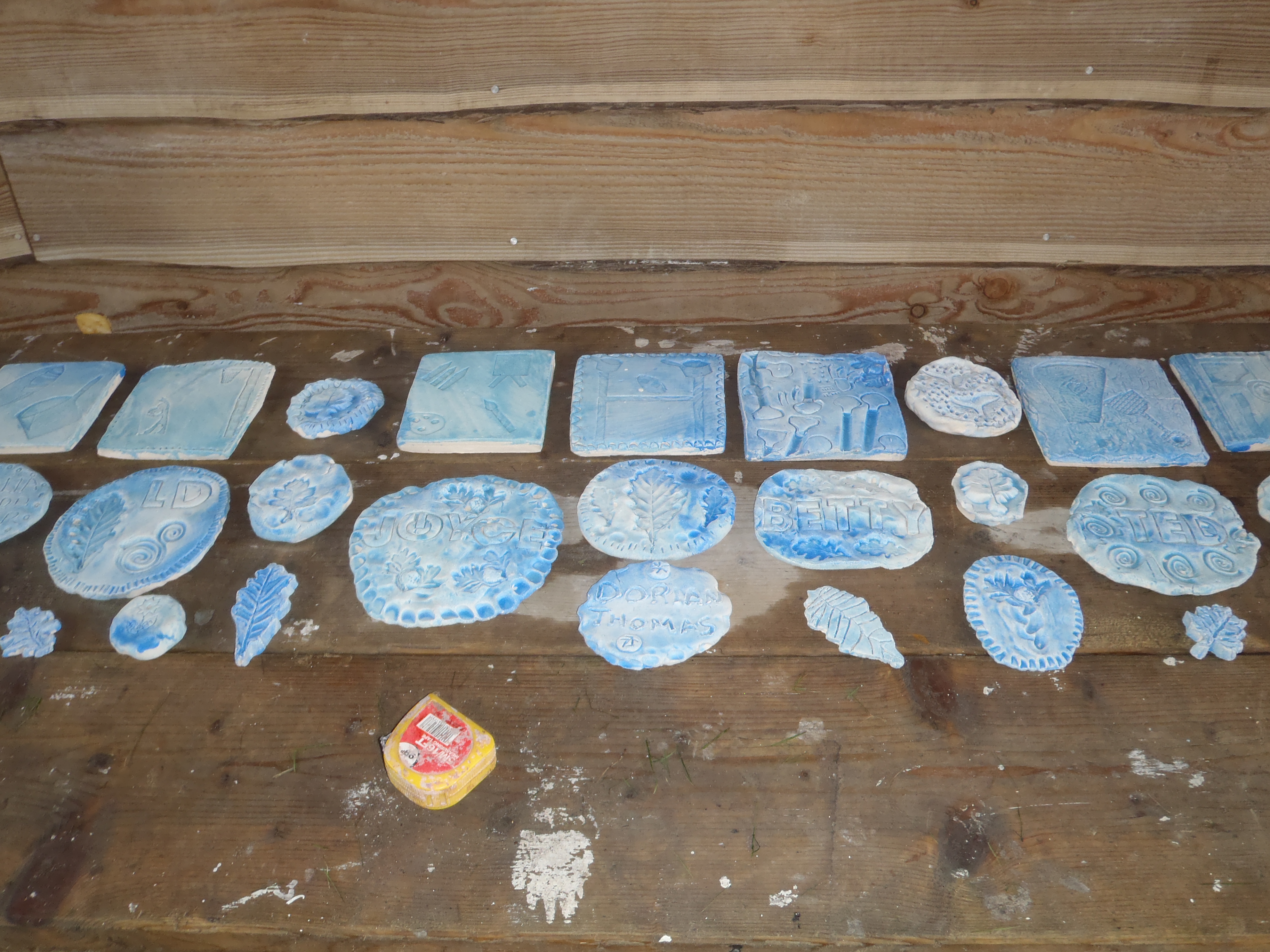 The charming tiles, made by pupils at Llannon Primary School and residents at Mynydd Mawr are laid out in a measured pattern.