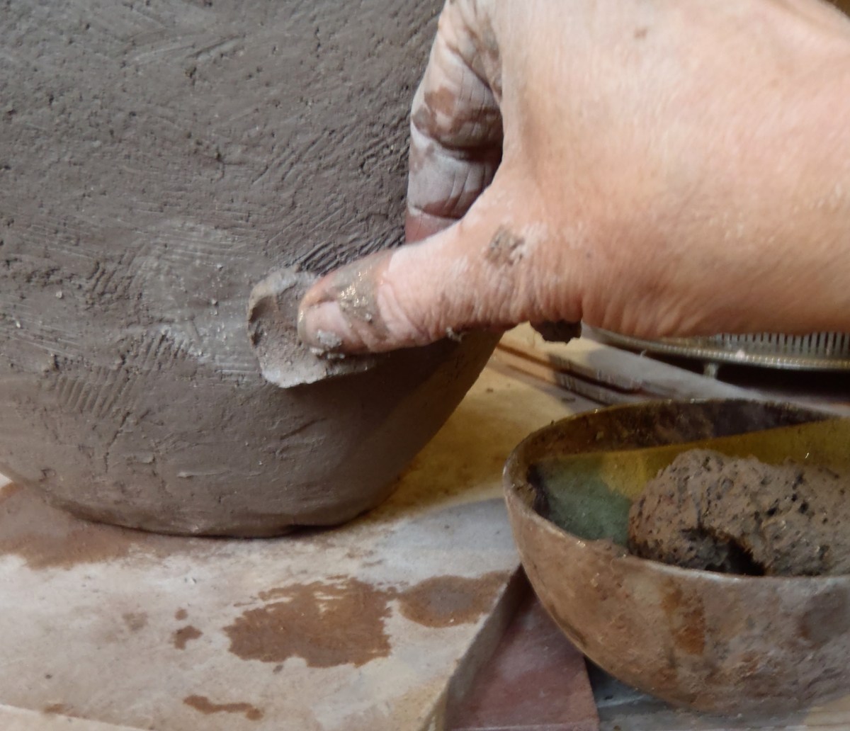 Rebecca Buck, Osprey Studios. Published November 5, 2015 at 3097 × 2665 in How to Coil-build with clay from small to monumental. ← Previous Next → Soften any indented areas that you don’t like and add clay to fill them. Add textures in the same way. Paddle them gently.