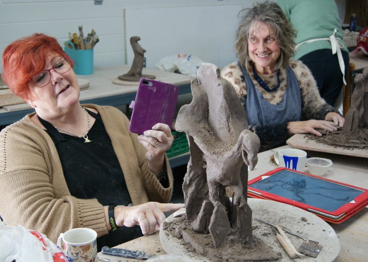 Take breaks, look out side to clear your eyes then glance at your sculpture and note what you first notice. If you hit a wall with it cover with a bag and walk away! I sometimes leave sculpture wrapped for months. I check regularly to mist with water and see if I can move forward again. Taking photos can be a good way to get some perspective. Ask others ‘what they see’ and compare that to what you want them to see. A dog that looks like a donkey has too big a head for example.