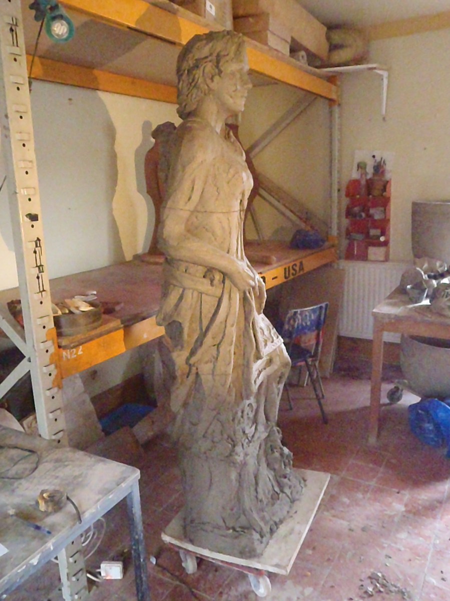 There are heavy-duty , adjustable shelves and everything is movable if I need the whole floor space for large projects.Building sculptures in clay is a slow , drawn-out process; most pieces are on wheels so they can be push aside to ‘rest’ and ‘settle’ wrapped in plastic.
